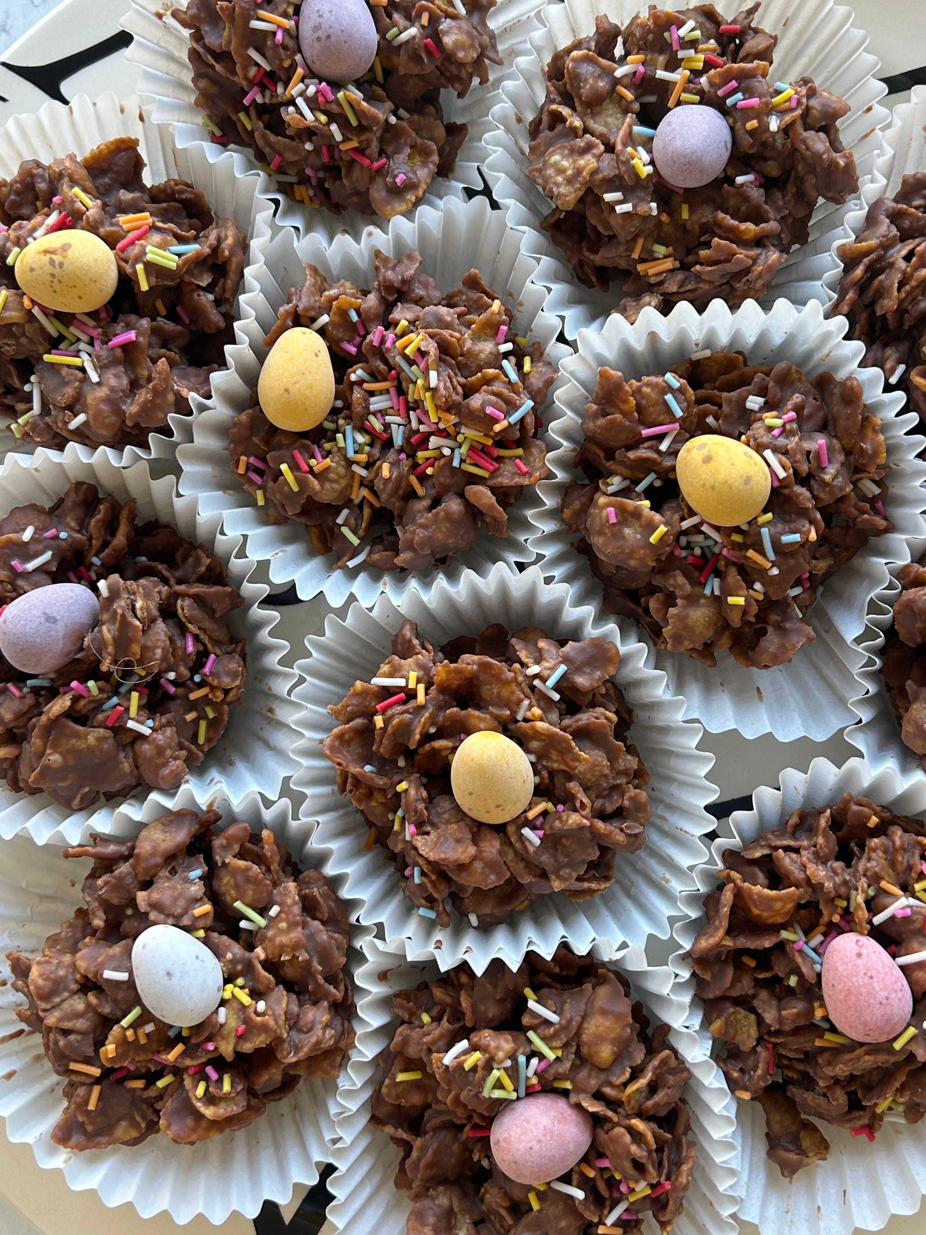 My sister made these, adorned with sprinkles and mini eggs for nostalgia’s sake.