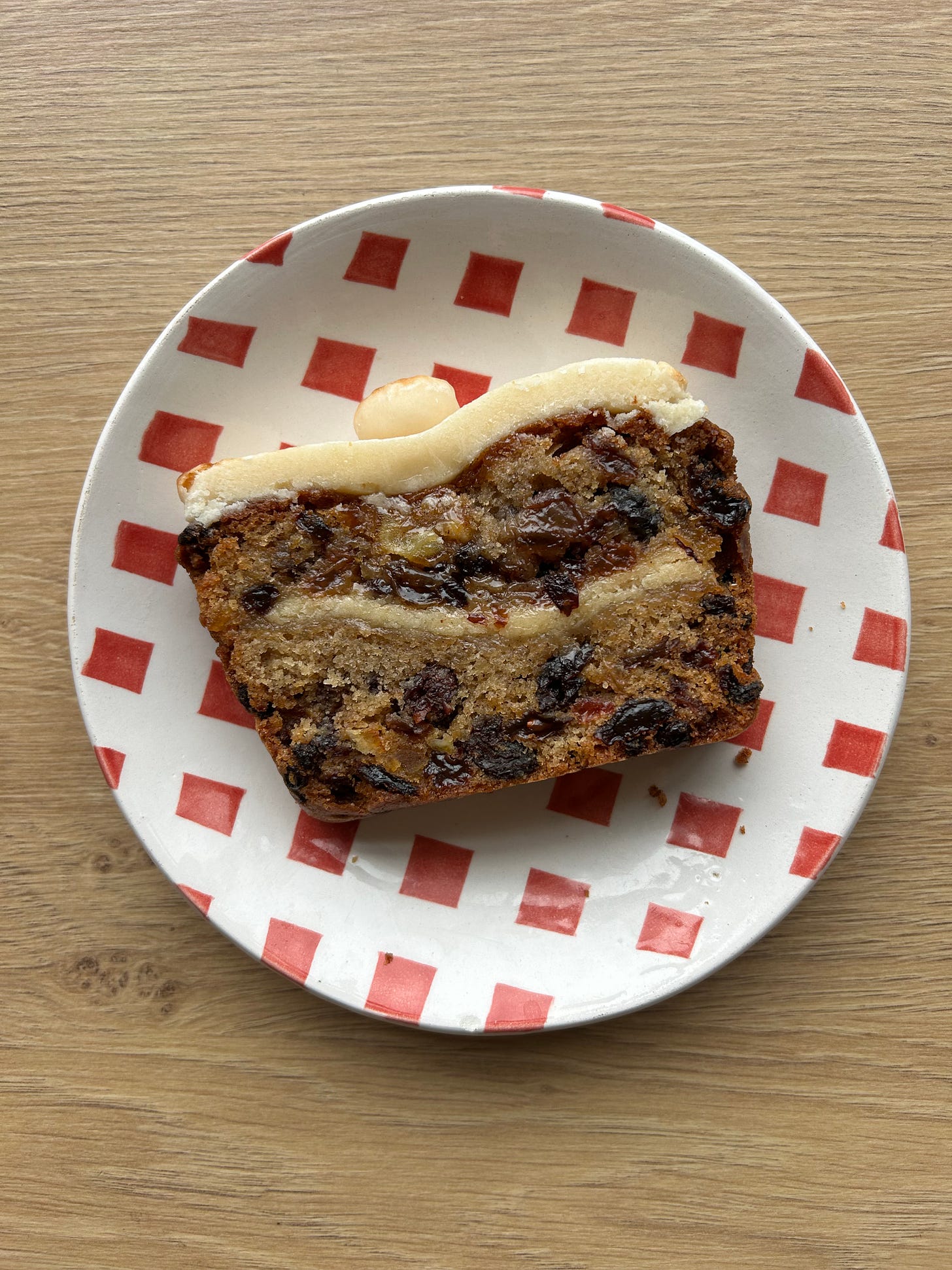 My mum makes one each year for Easter, but opted for a much less faffy simnel loaf this year. Fruit-studded, with a layer of marzipan running through the middle - look at that cross section!
